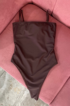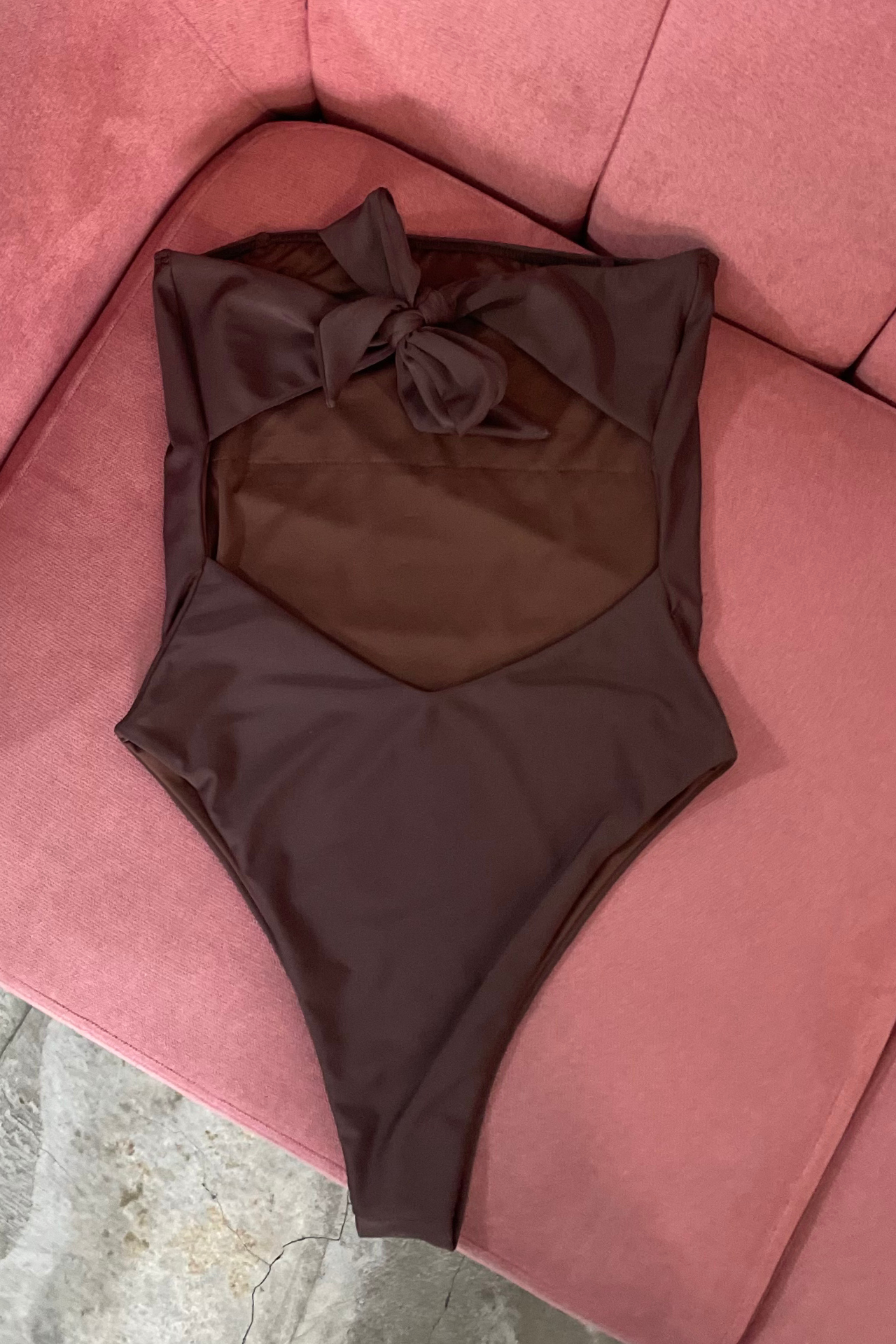 Nuestro One Piece Sabrina cuenta con una abertura en la parte de la espalda que estiliza de forma linda la figura y lleva lazos para poder darle el ajuste deseado. Tiene abertura para poner copas y las pitas son regulables se pueden sacar para usarse de modo strapless.