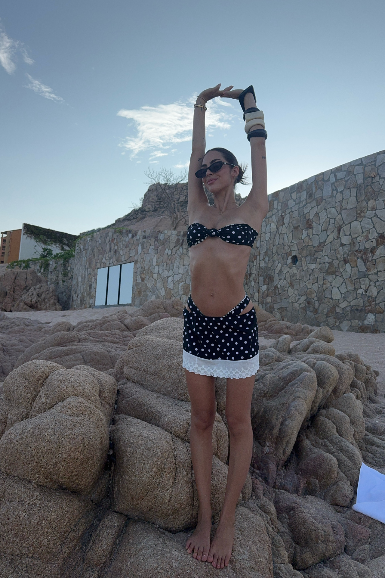 Nuestro Top Emily estilo strapless con tiras anchas brinda un agarre seguro y cómodo, puede ser usado con un nudo en el medio y es reversible.