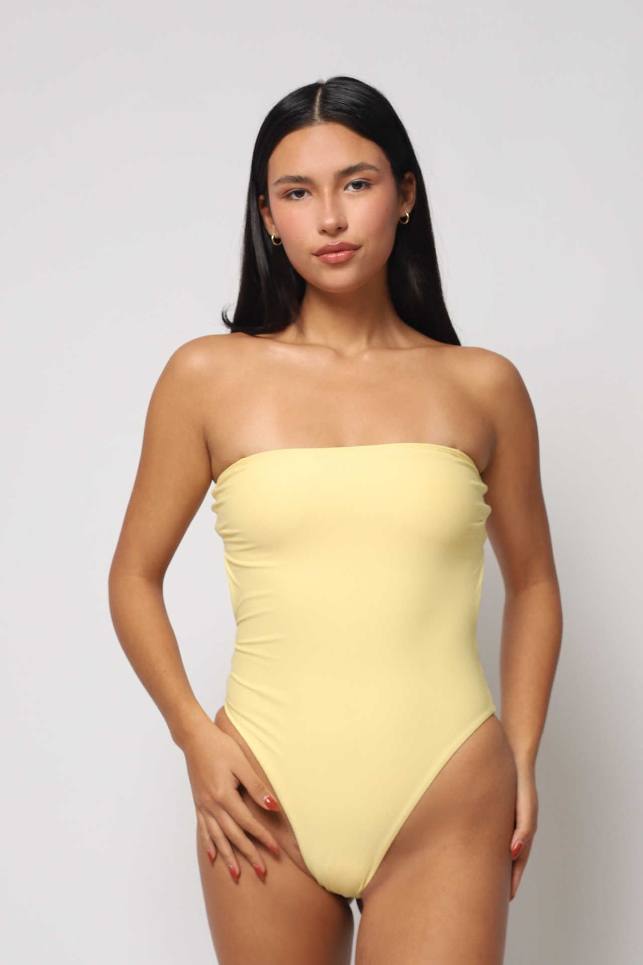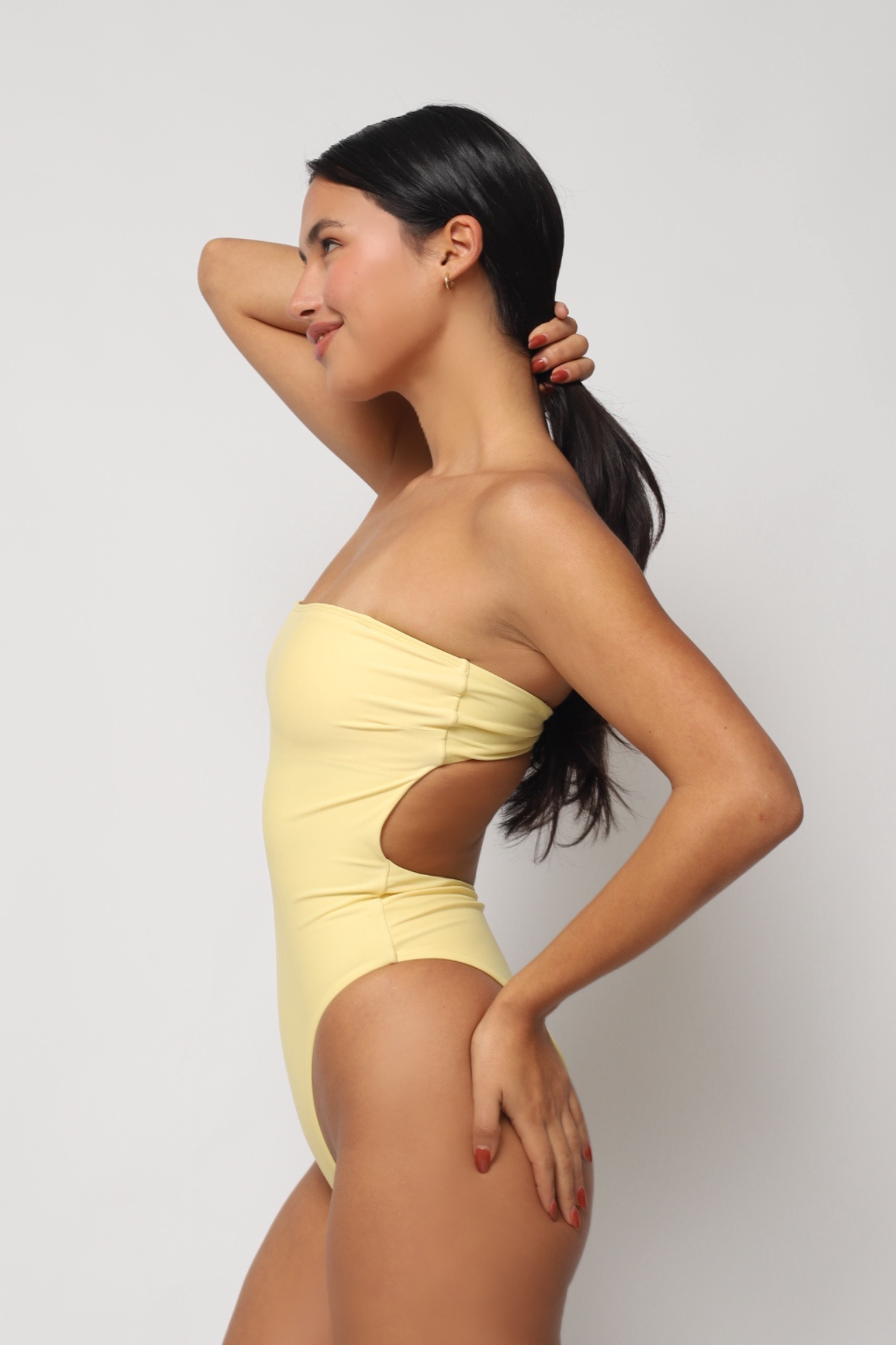 Nuestro One Piece Sabrina cuenta con una abertura en la parte de la espalda que estiliza de forma linda la figura. Tiene abertura para poner copas y las pitas son regulables se pueden sacar para usarse de modo strapless.