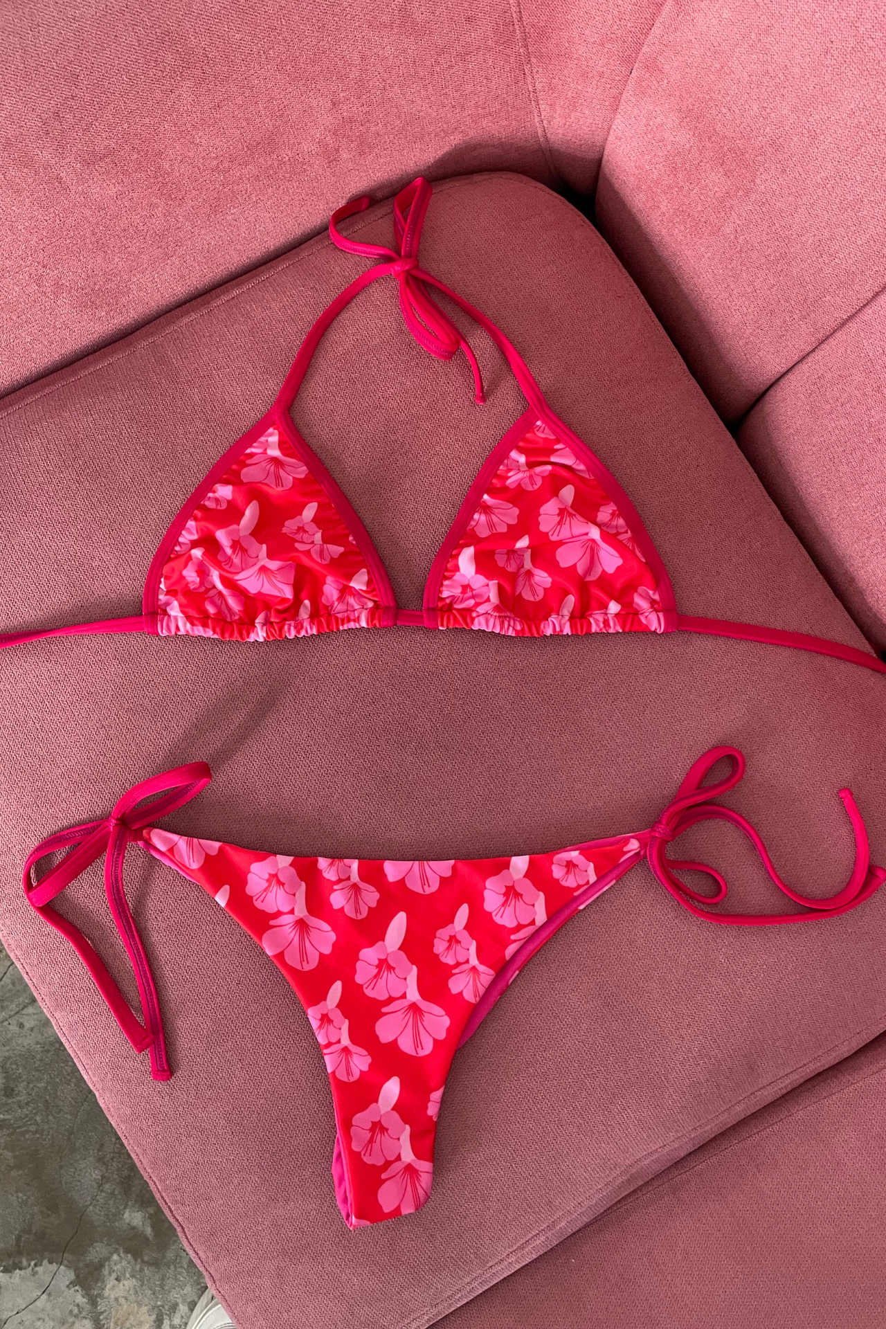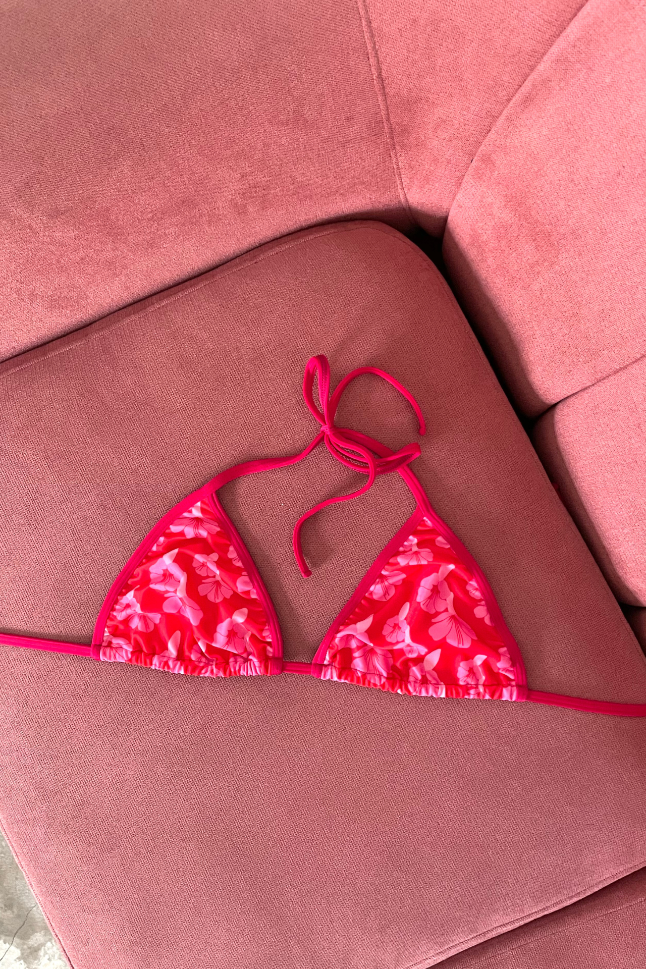 Nuestro top Olivia es tipo triangulo con ribetes alrededor, es cómodo y regulable.