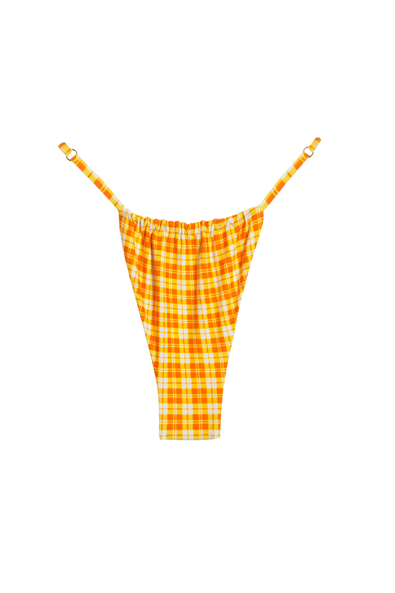 Un diseño versátil y ajustable, con tiras que permiten regular el fit tanto en la parte delantera como en la trasera. Ideal para quienes buscan estilo y comodidad en un solo bikini.
